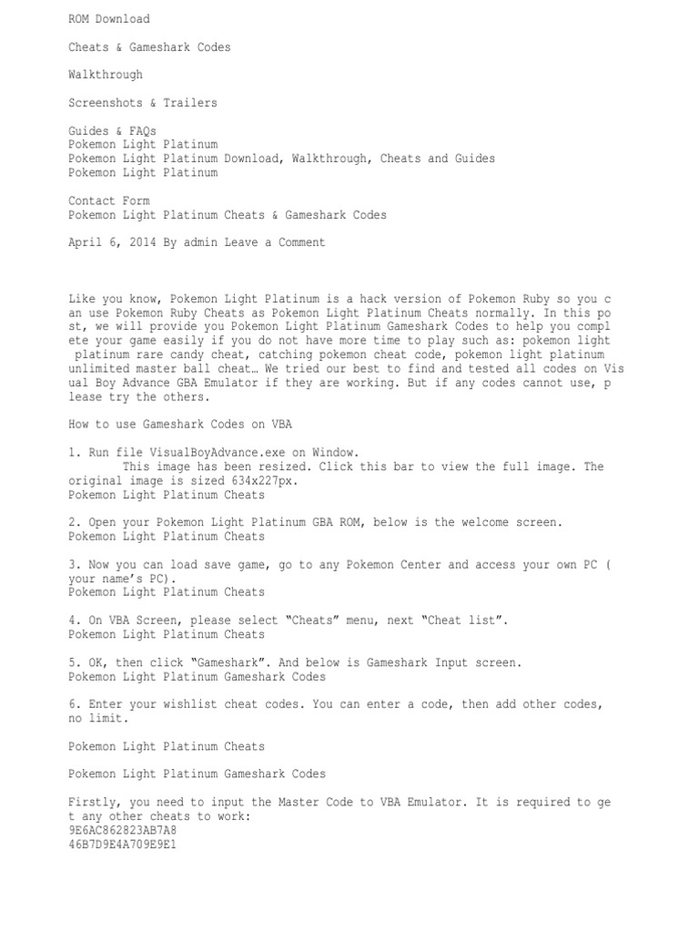 We hope information that you ll find at this page help you in playing pokemon light platinum on game boy advance platform.